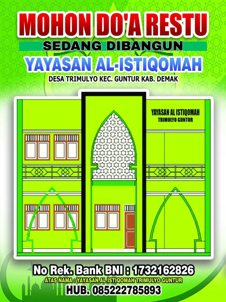 Kami mengundang para orangtua peserta didik, donatur dan masyarakat umum untuk bersama-sama ikut berkontribusi dalam mencerdaskan anak bangsa melalui yayasan kami. Dukungan anda, baik dalam bentuk do’a, tenaga, pikiran maupun materi/dana, sangat berarti untuk kelangsungan dan pengembangan yayasan kami.